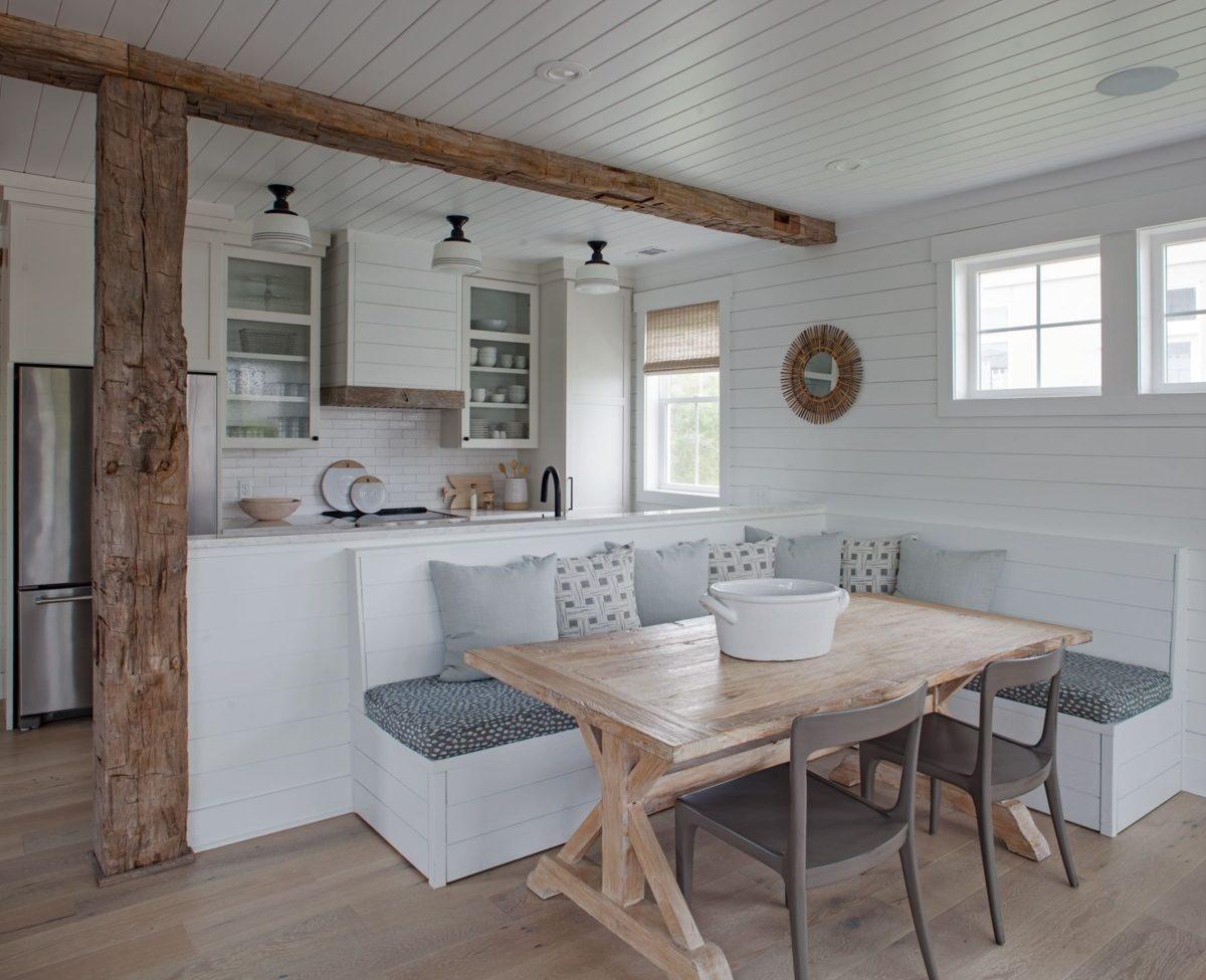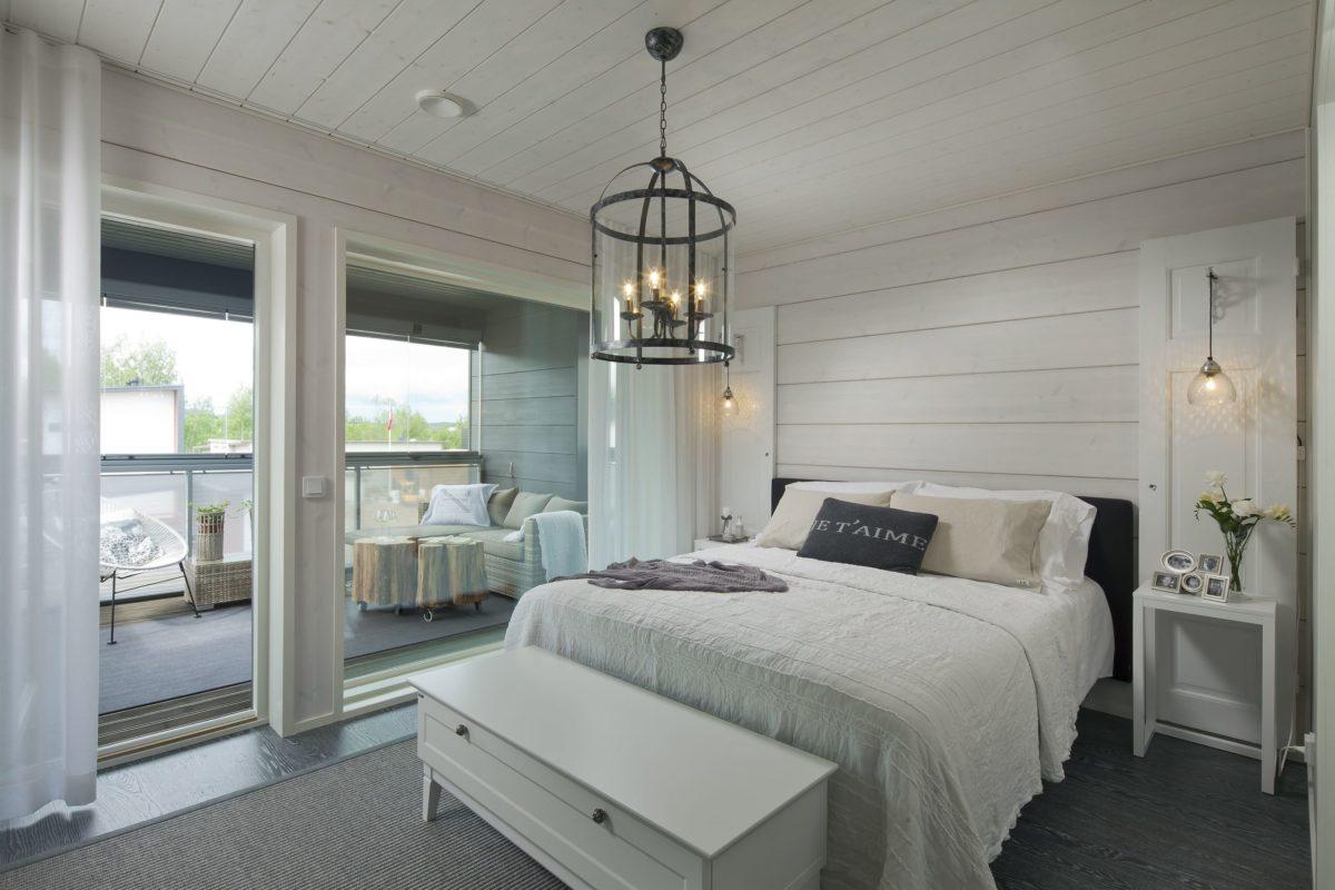 Вагонка для этого стиля идеальна белоснежная. Белые матовые доски – визитная карточка стиля.