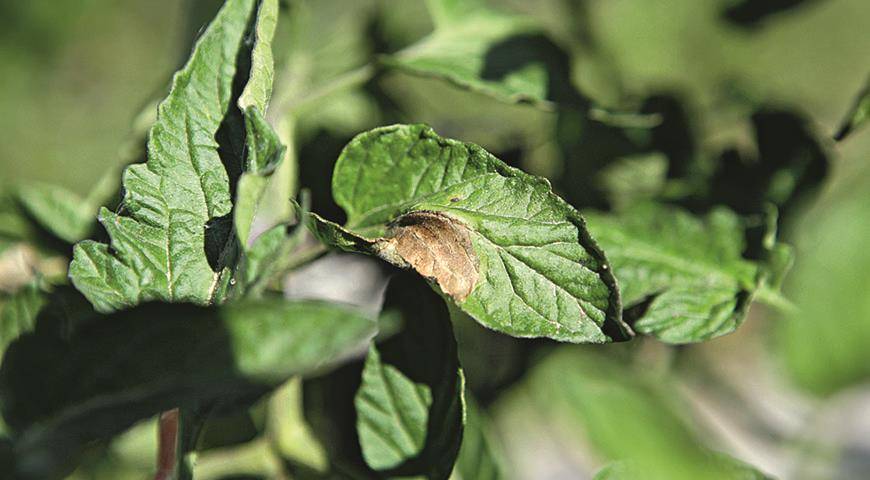 Фитофтороз на листьях томата.