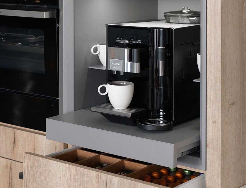 Подходят для такого размещения и кофемашины, кухонные комбайны и другие виды техники, используемые для приготовления пищи и напитков.