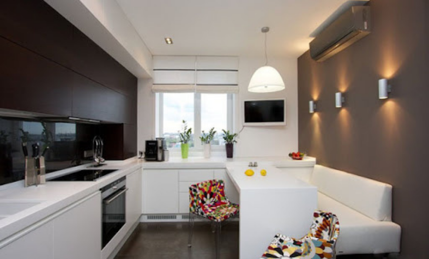 Малогабаритные кухни требуют эффективного расходования места. Имеет значение и правильная расстановка мебели и оборудования.