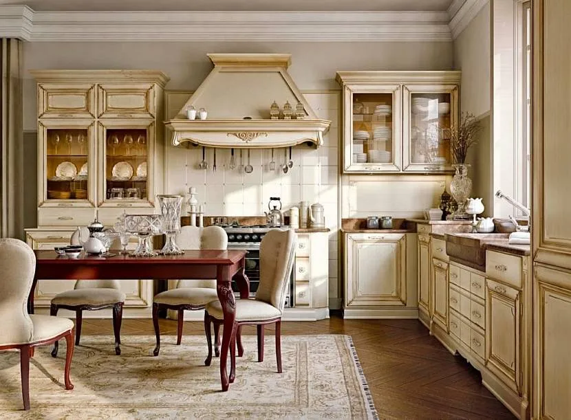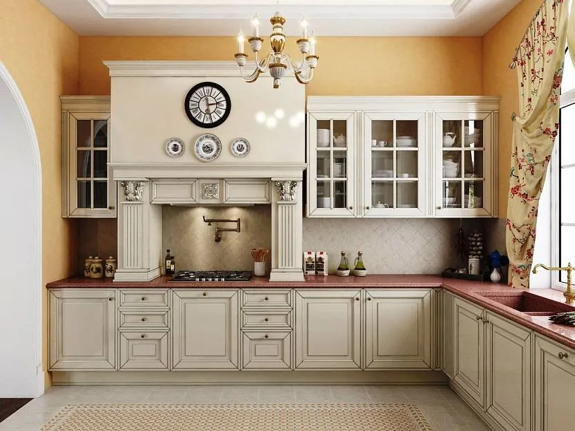 Для каждого дизайнерского направления стараются употреблять для отделки самые различные виды строительного сырья. Классическая кухня отличается тем, что в ней приемлемо использовать лишь натуральные материалы.
