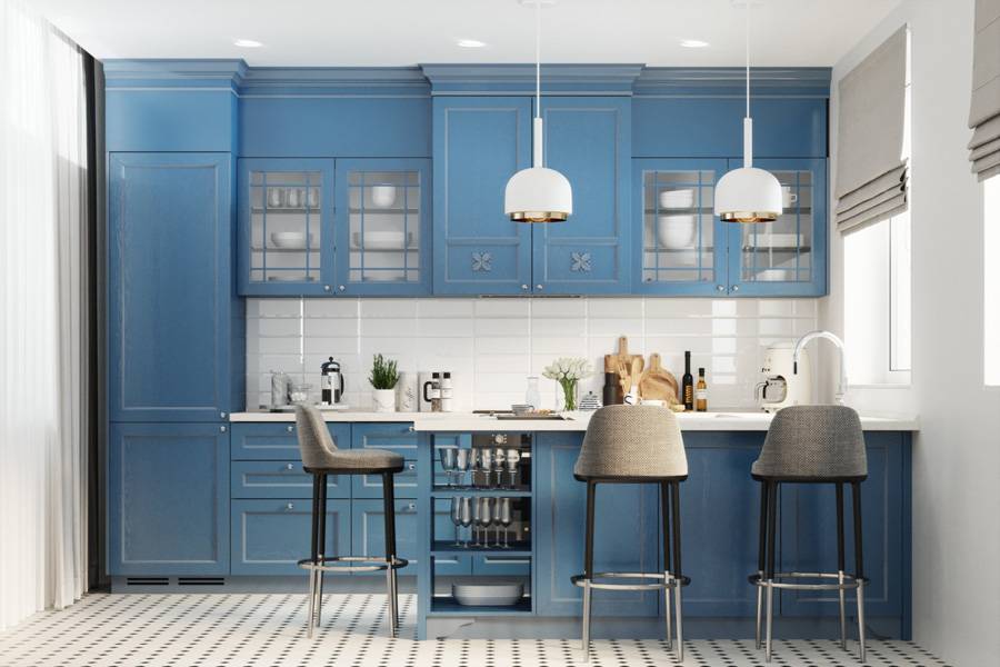В целом, практически любой оттенок натуральной гаммы, а также сдержанные тона будут удачно сопутствовать белой классической кухне. Старайтесь избегать двух крайностей – монохромности и слишком большого количества разных цветов в акцентах. Удачные примеры смотрите на подобранных нами фото и дизайн-проектах.