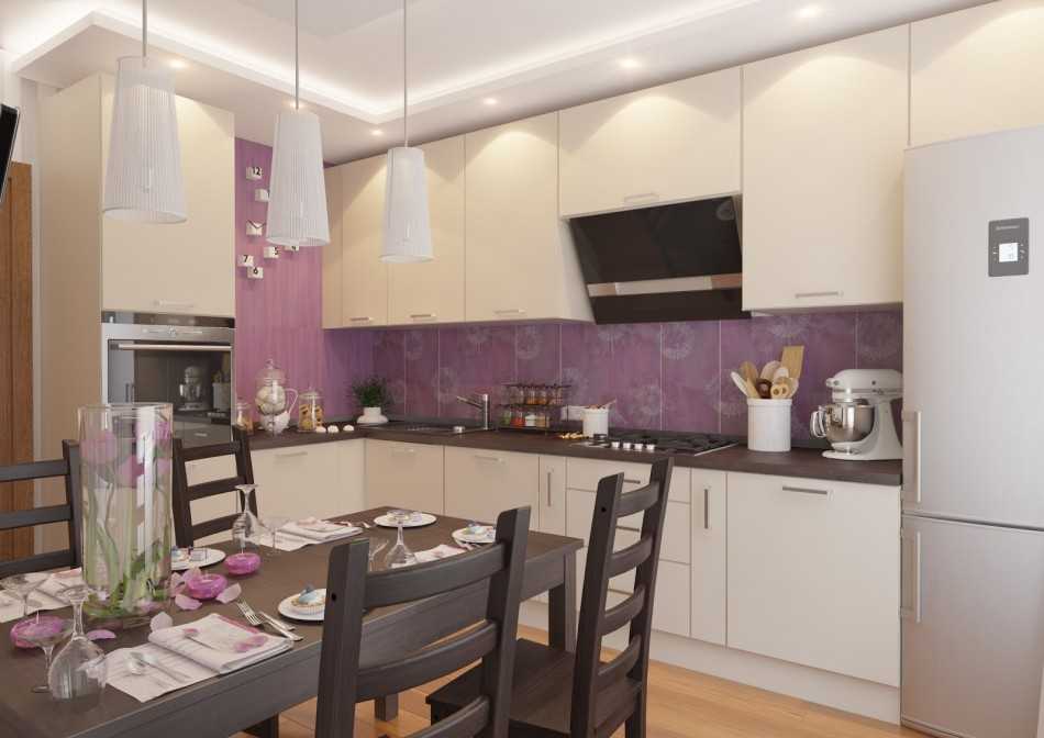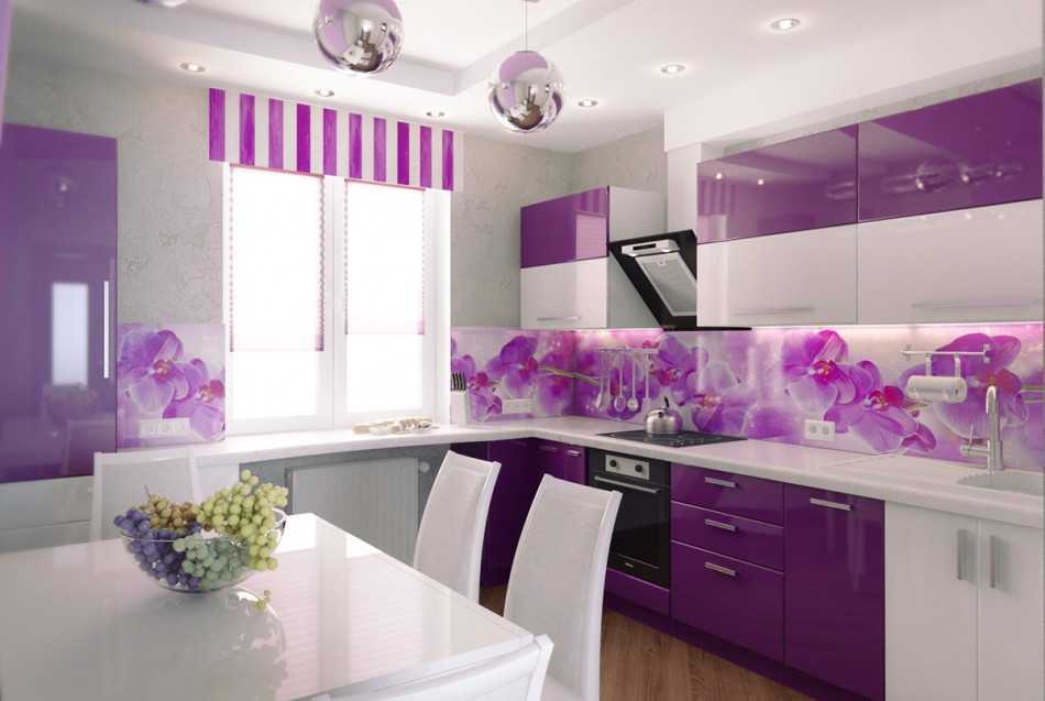 В плане выбора расцветки для фасада гарнитура и отделки комнаты кухня 8 кв м исключительных ограничений не накладывает. В дизайне допустимы как мягкие бежевые и белые декоры, так и пестрые фиолетовые или зеленые.
