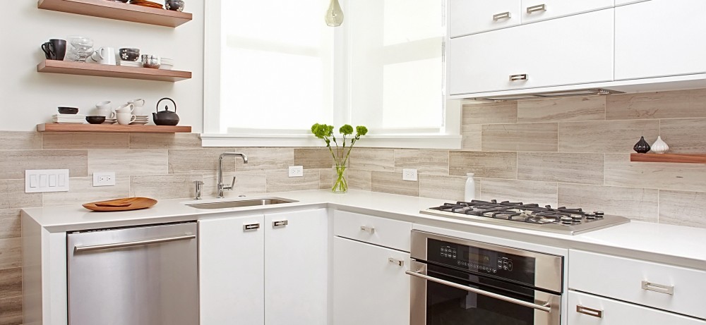 Угловая кухня со смежными рабочими поверхностями на небольшой кухне