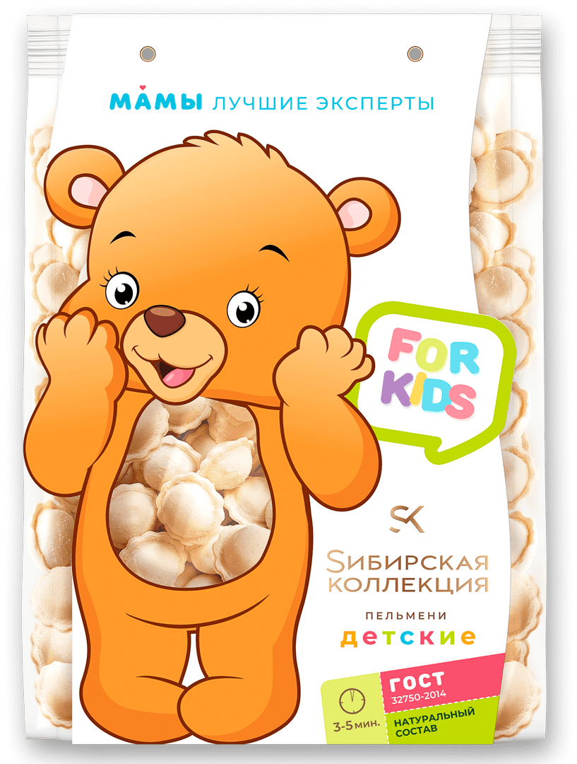 Список марок пельменей по средней стоимости продолжает бренд «Сибирская Коллекция». Первое, что притягивает взгляд, – пачка с нарисованным коричневым медвежонком. Благодаря «прозрачному» животику можно хорошо рассмотреть пельмешки. Вес – 500 грамм.