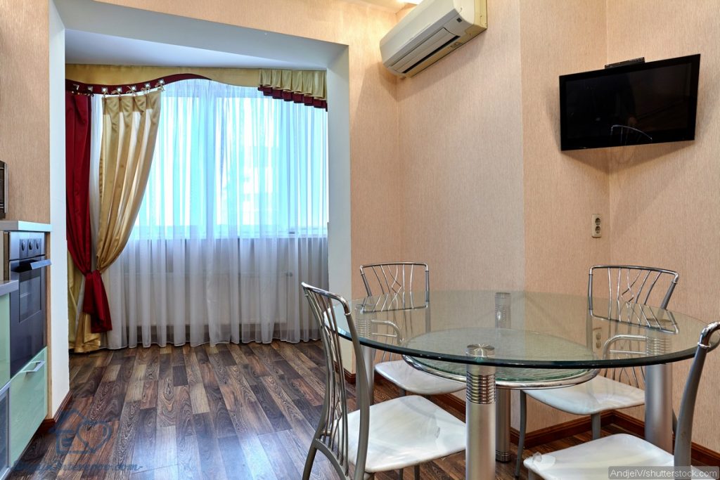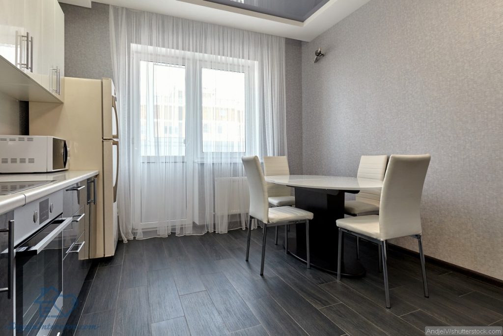 Стол-трансформер, используемый в качестве обеденного, позволяет эксплуатировать кухню более эффективно. Обычно его применяют в сложенном виде, а при необходимости раскладывают, что позволяет «поселить» за столом всю семью.