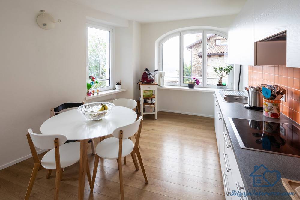 - кухня с круглым столом не выглядит загроможденной;