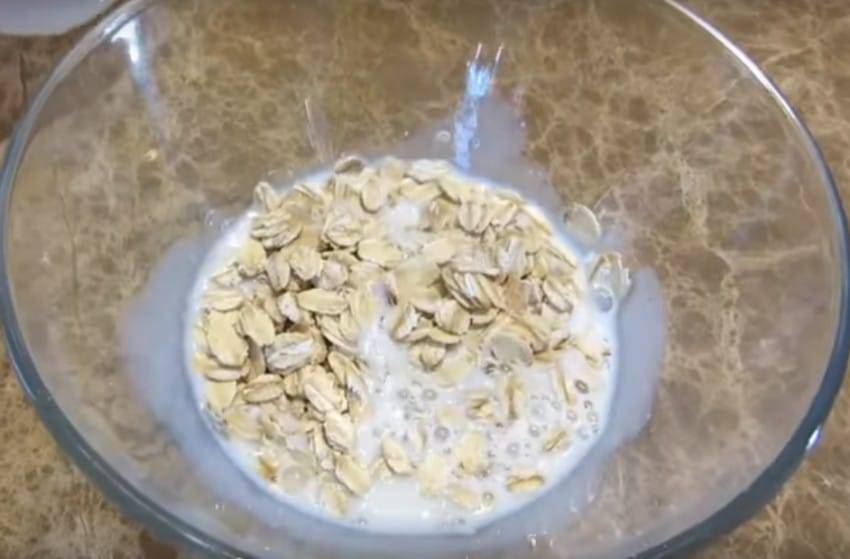 1. В отдельной посуде соедините хлопья с молоком. Оставьте подходить около 5 минут.