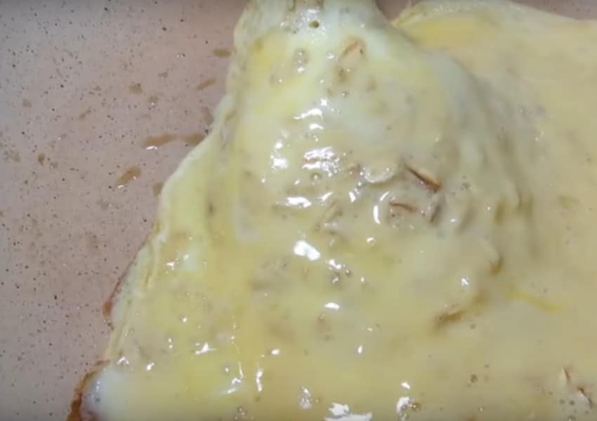 2. В глубокой тарелке взбейте яйца, добавьте овсяную смесь и хорошо перемешайте.