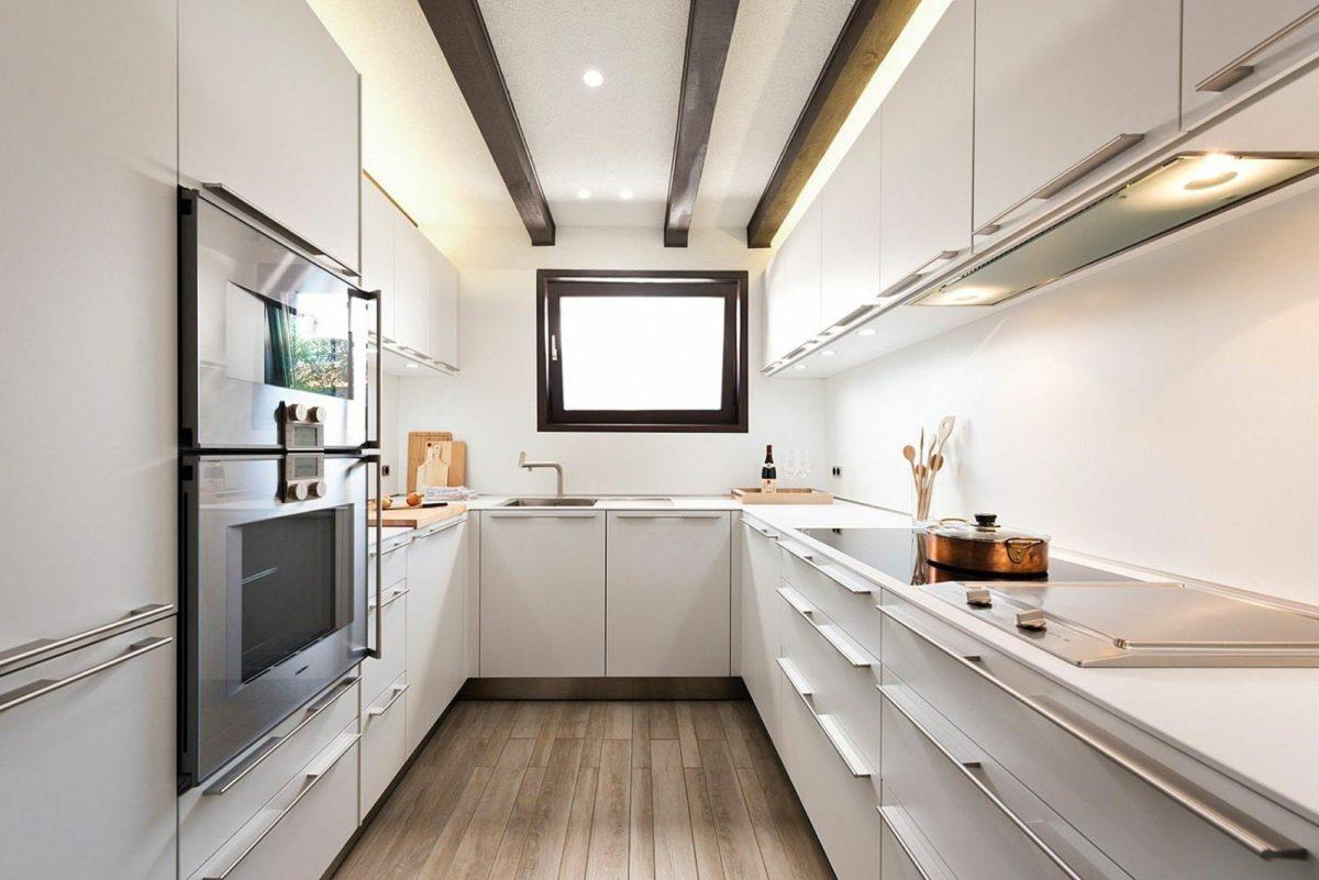 Этот вариант планировки – идеален для узеньких, вытянутой формы кухонь, ширина которых не превышает трех метров, а также для студий, кухонь с гостиными или в интерьерном стиле лофт.