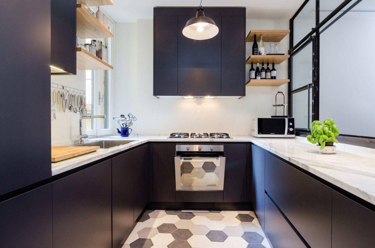 Фото П-образных кухонь в маленьких помещениях помогут определиться с направлением дизайна. При заказе гарнитура стоит учитывать следующие аспекты: