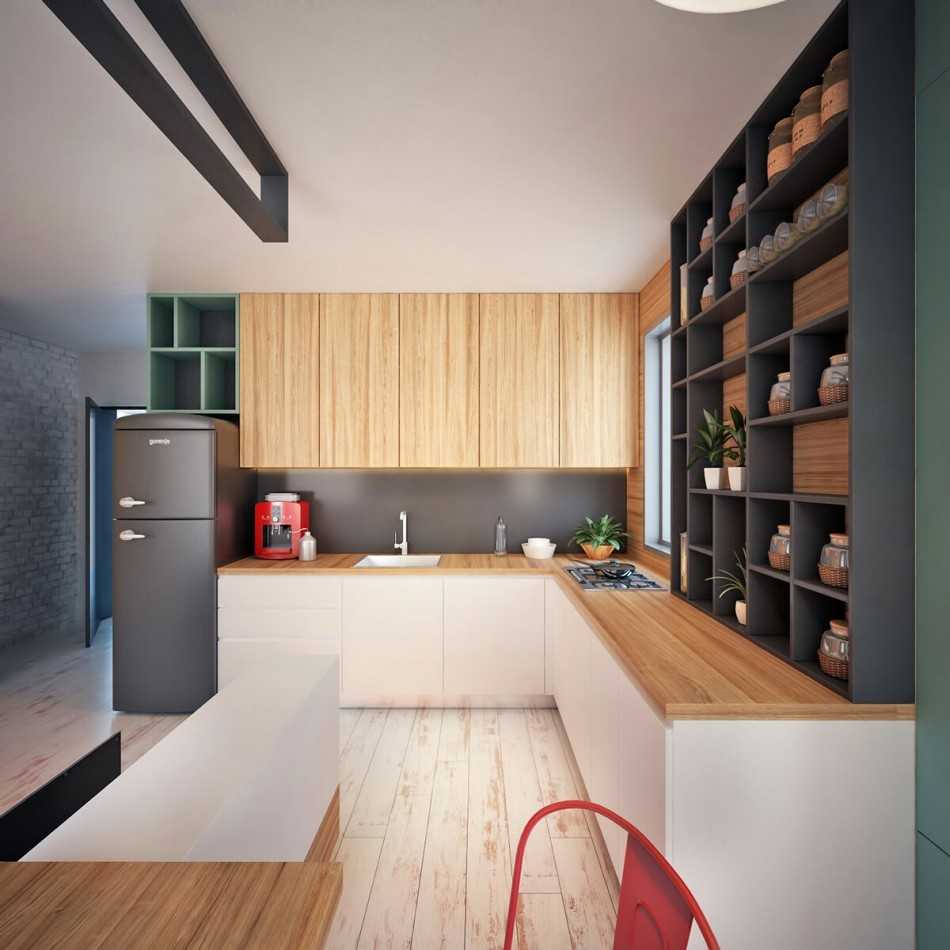 Дизайн кухни 9 кв с холодильником
