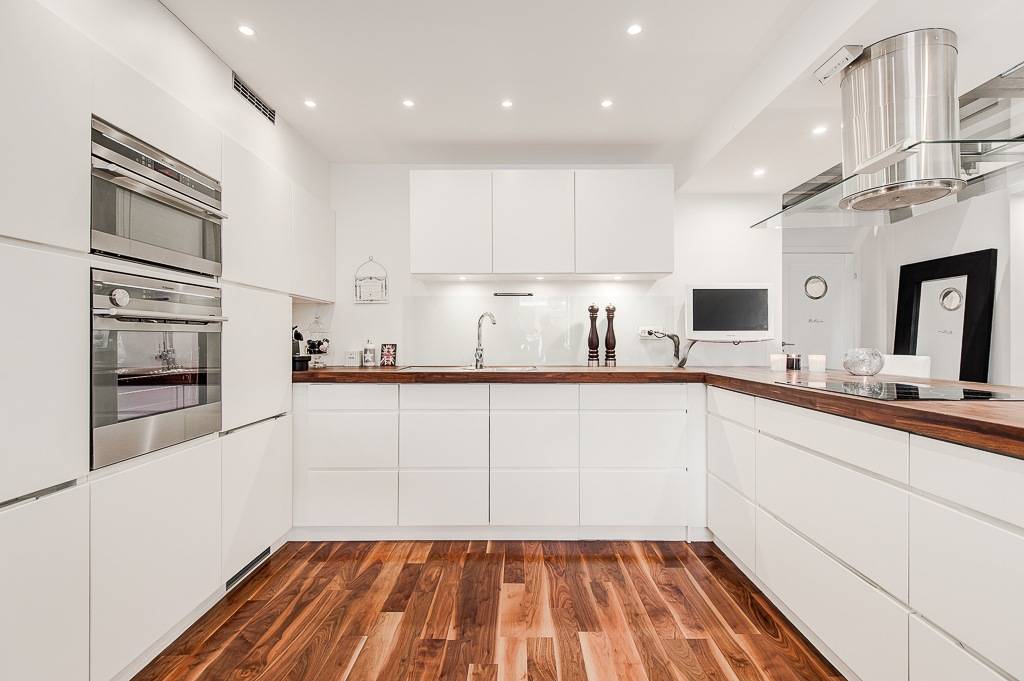 Вообще, такой тип расстановки мебели подходит почти для всех направлений. П-образная кухня будет хороша и в современном стиле, и в классическом стиле, и в модном сейчас стиле «прованс».