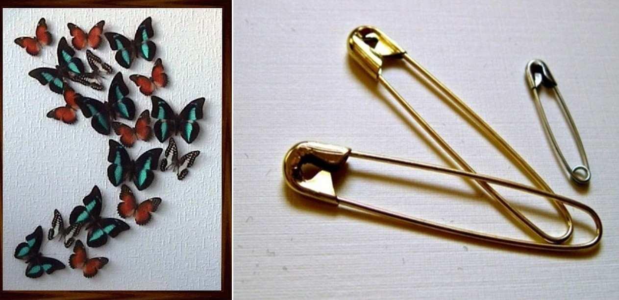 Булавки можно использовать в тех случаях, когда полотно, на которое крепится панно, сделано из мягкого материала, так как булаву потребуется вонзить в стену на столько глубоко чтобы потоки ветра не вырвали их и не разнесли по комнате, что может быть далеко не безопасно.
