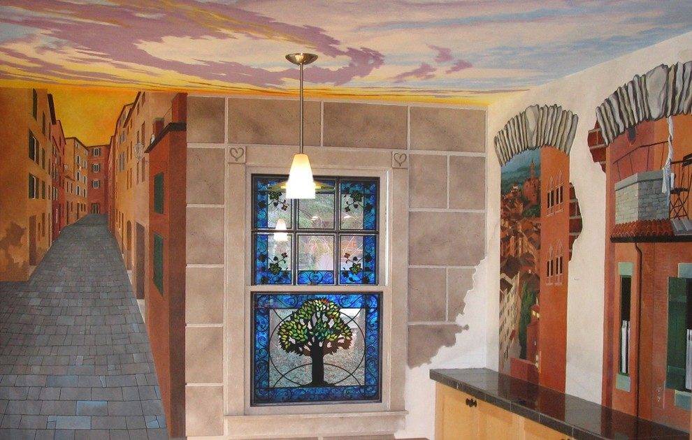 Если кухня — это скорее уютная классика, чем ультрамодный хай-тек, то вы попробуйте не просто украсить одну из зон рисунком, а использовать такой прием, как Arch (арка). С ее помощью можно создать дополнительные объемные элементы и область у плиты превратится во что-то напоминающее камин или склад в старинном погребе. Каждый раз, готовя свои блюда, вы будете чувствовать себя коварной ведьмой или прекрасной средневековой девой. Подходит для креативных.
