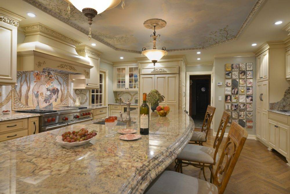Гармоничная отделка стен живописными панно из плитки позволит создать запоминающуюся интерьерную композицию, которая не встретится ни в одном другом кухонном пространстве.