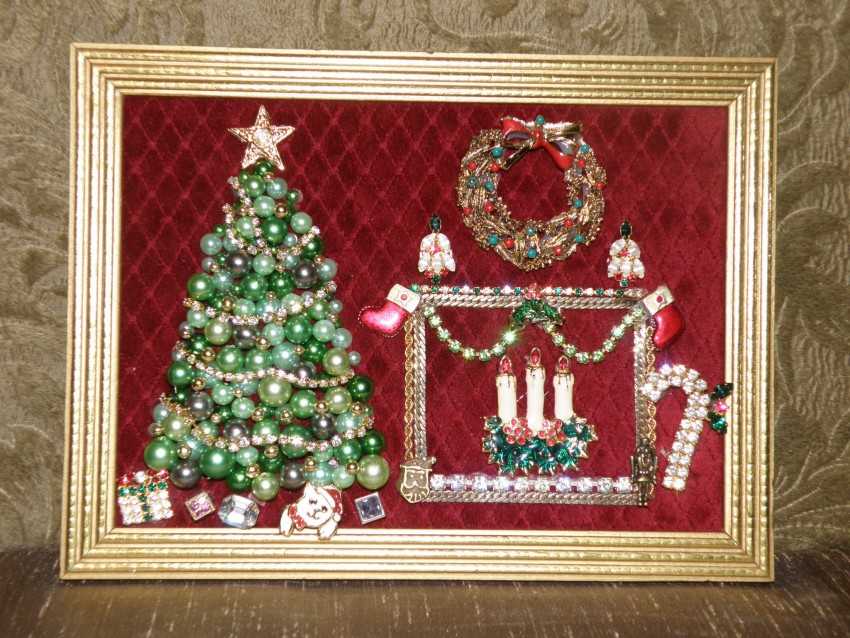 Сделать его можно из любых подручных средств. К примеру новогоднее панно может быть украшено бумажными снежинками, снегом из ваты, блестками и бусинками, а в середине композиции может красоваться роскошная многослойная ель, вырезанная из ткани. Главное приложить фантазию и креативность!