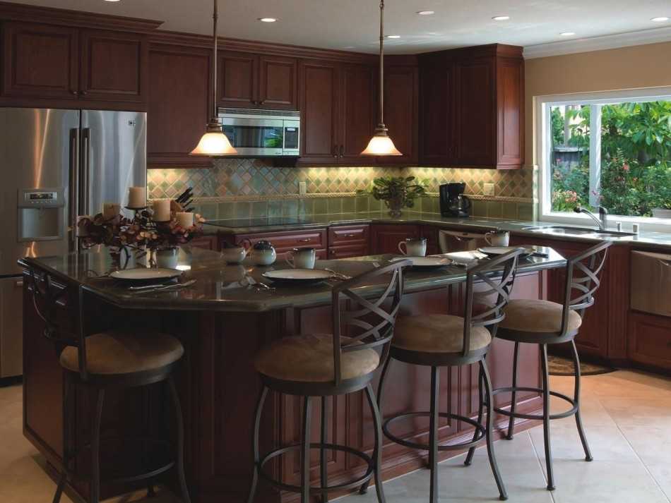- Функциональный остров. Всегда остается вопрос, что вынести в эту зону. Раковина или плитка будут неуместны. Идеальное решение — дополнительная рабочая поверхность с наличием нижних шкафчиков по кругу.
