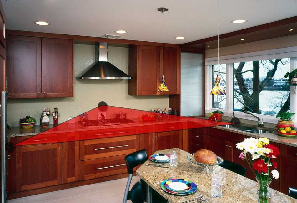 Если брать во внимание правила зонирования кухни, то можно выделить базовое правило планировки кухни — правило рабочего треугольника.