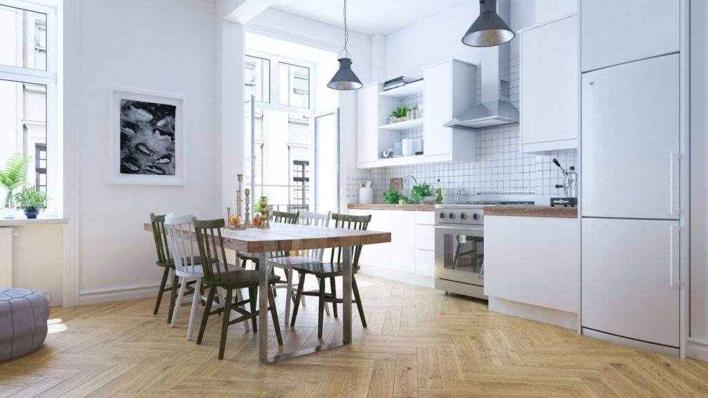 Что лучше: паркетная доска, ламинат или массив в условиях кухни?