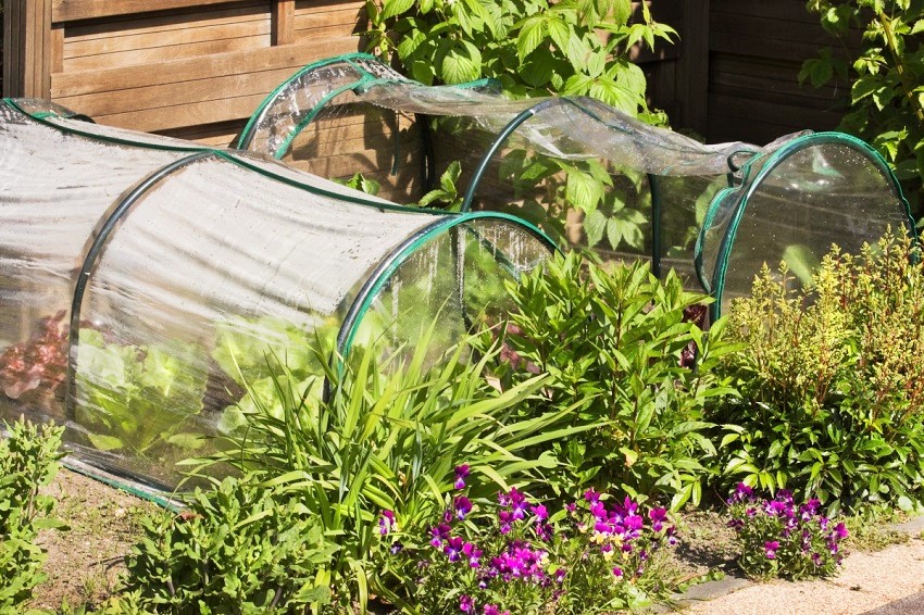 Парники из дуг с укрывным материалом хорошо подходят для выращивания овощей и зелени