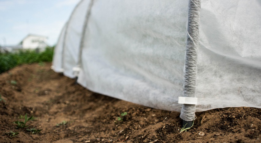 Парник из пластиковых дуг под нетканым укрывным материалом