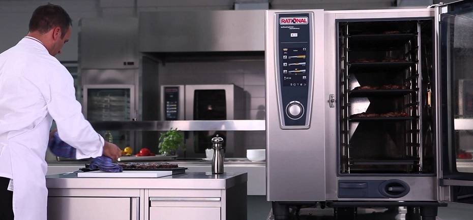 - Пароконвекционная печь Rational SelfCookingCenter (SCC) 101 5 Senses. Немецкое устройство десятиуровневой загрузки. Электропитание осуществляется от сети в 380 вольт. Рабочий диапазон температур от 30 до 300 градусов Цельсия. Ее цена составляет 1040000 рублей.