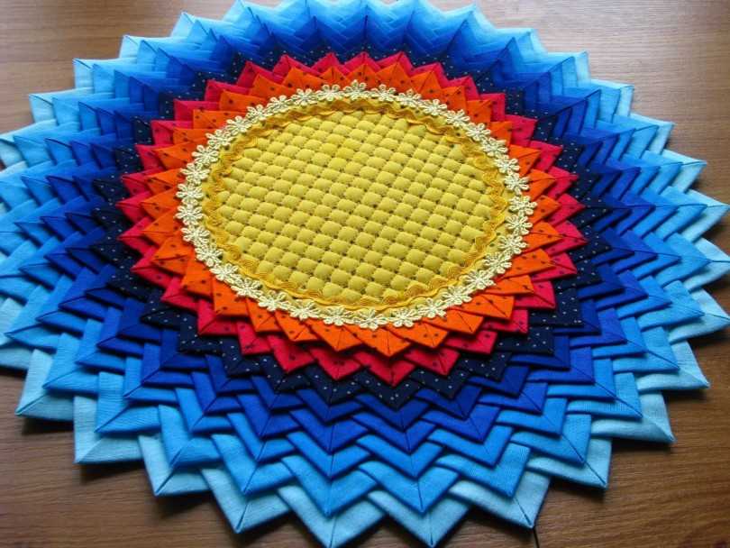 - Круглый коврик из треугольников под компьютерный стол;