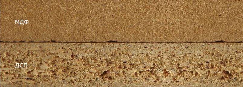 Для большей наглядности отличий между двумя материалами можно сравнить структуру ДСП с неоднородным сырьем, пропущенным через блендер, а МДФ – с продуктом из мясорубки. Плотность плиты МДФ варьируется от 600 до 800 кг/м 3 , что в условиях повышенной влаги позволяет материалу по некоторым характеристикам превосходить даже натуральную древесину.