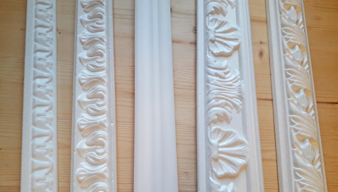 Пенополистирол – более прочная разновидность пенопласта. Он также легок по весу и в обработке, но имеет большую плотность и гладкую поверхность, более устойчив к механическим повреждениям, хорошо поддается окрашиванию. Эти два материала благодаря своему небольшому весу оказывают незначительную нагрузку на несущие стены.