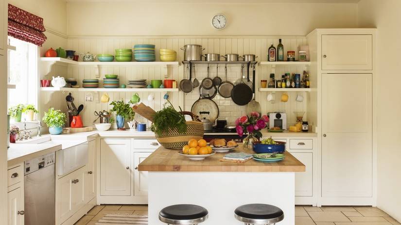 - Кантри. В кухне в деревенском стиле для отделки следует использовать материалы светлых оттенков.