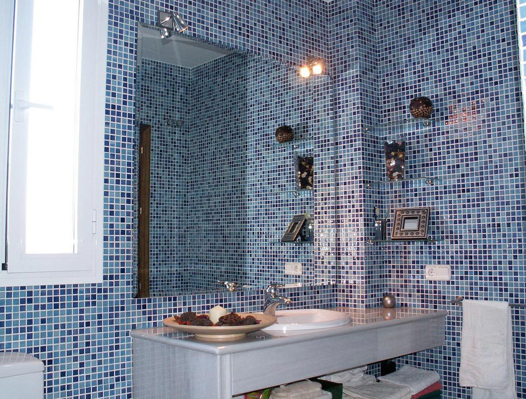 Рассматривая фото реальных дизайнов ванной комнаты с мозаикой, можно увидеть, насколько разнообразно ее применение: мозаикой декорируют как полностью стену либо все помещение, так и отдельные зоны: