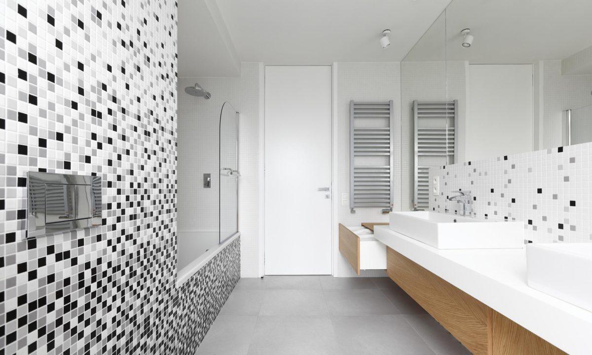 Ограничений в использовании нет никаких: таким образом отделывают и стены, и акцентные зоны в душевой или над ванной, и поверхности около раковины. Монохромные чипы здорово сочетаются с более крупной плиткой в тех же оттенках — можно создавать игру фактур.