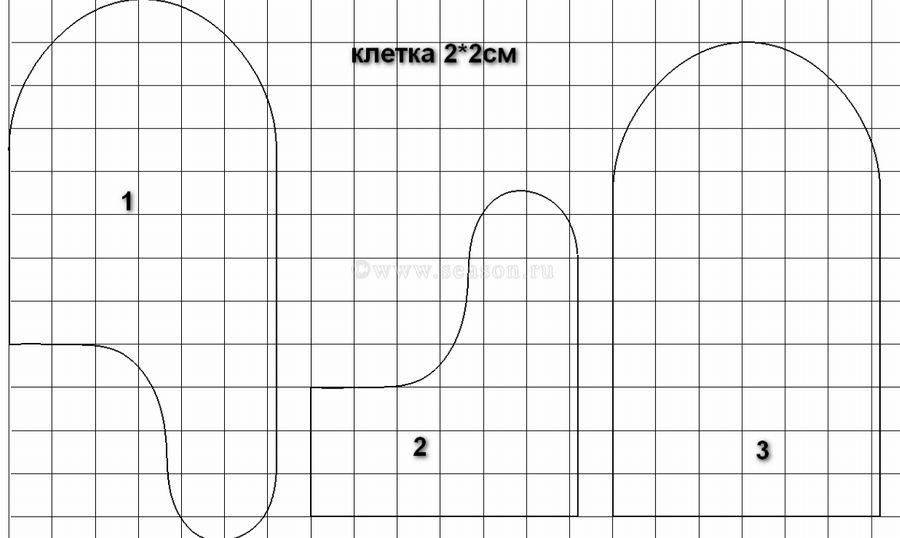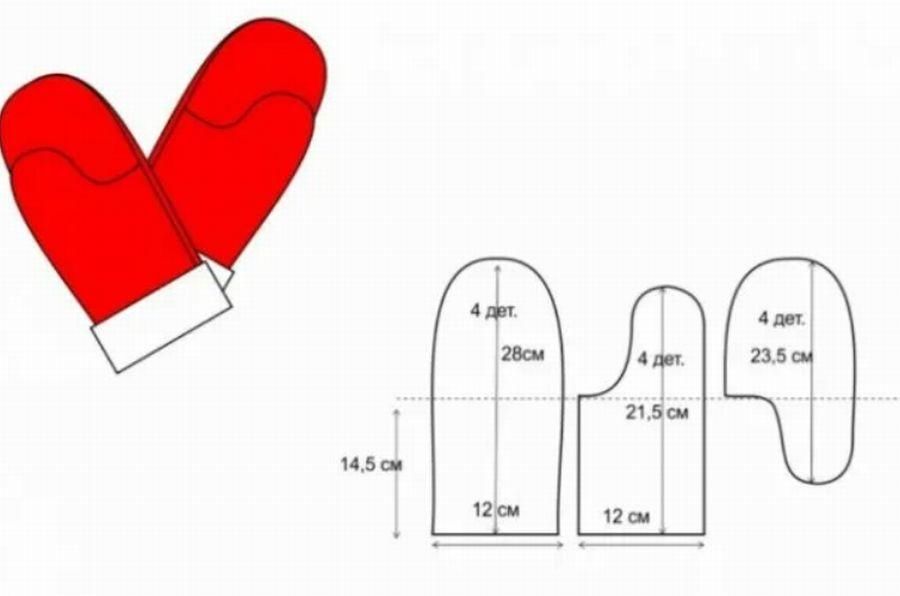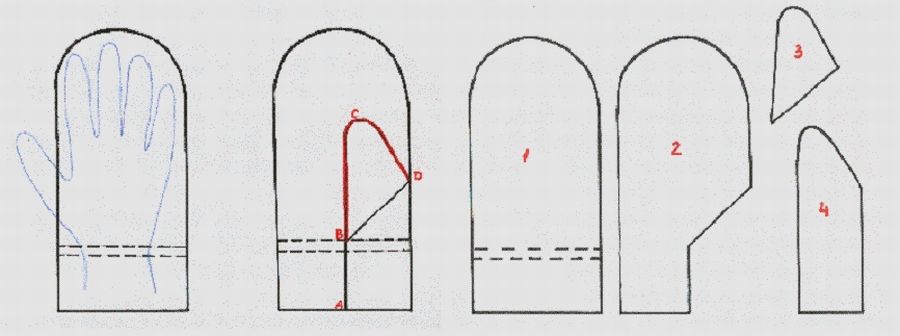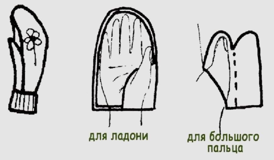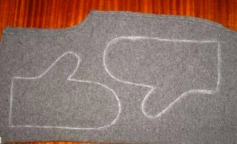 Выкройка непромокаемых рукавиц с теплой подкладкой из шерстяного трикотажа.