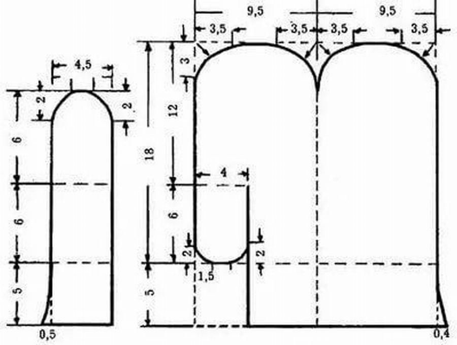 Выкройка рабочих рукавиц, по которой советуют заранее сделать заготовки. Размеры даны ориентировочно, их можно менять, сохраняя пропорции.