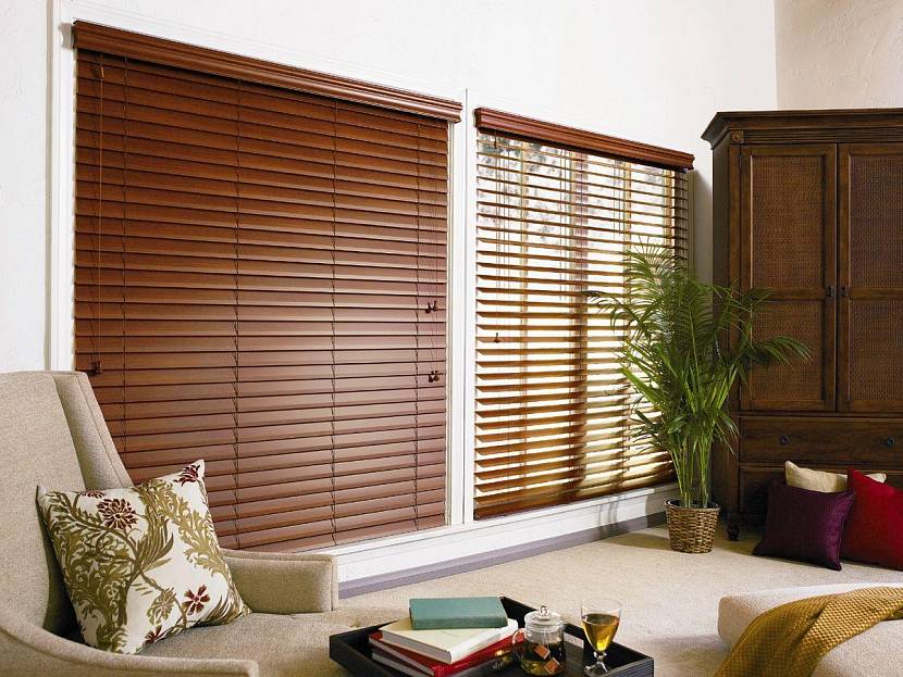 Горизонтальные жалюзи с ламелями из натурального дереваИсточник www.topdom.ru