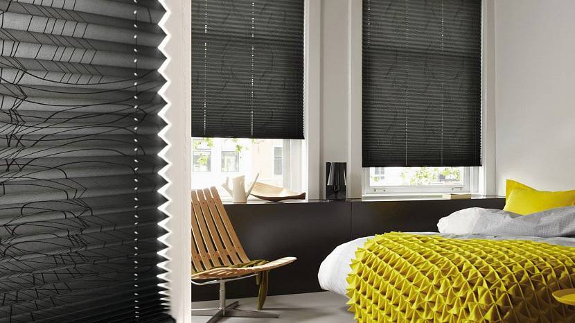 Плиссе – формой напоминают гармонь. Часто используются для обрамления нестандартных оконных проёмов. Изготавливаются из прозрачной, полупрозрачной (димаут) или непрозрачной (блекаут) ткани. Отличаются фактурой и плотностью.