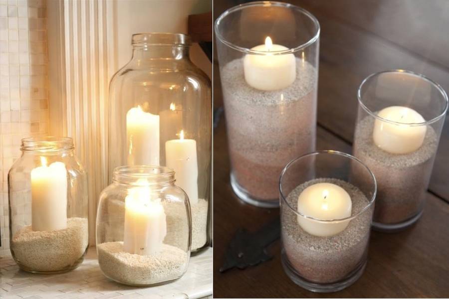 Свечи в банках можно наполнить различным декором, но стоит помнить о пожаробезопасности