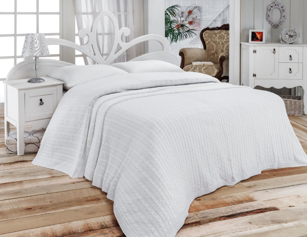 - Прованс. Ничто так не подчеркнёт романтизм прованса, как красивое вязаное покрывало нежных пастельных тонов. Вполне уместна пользующаяся большой популярностью крупная вязка.