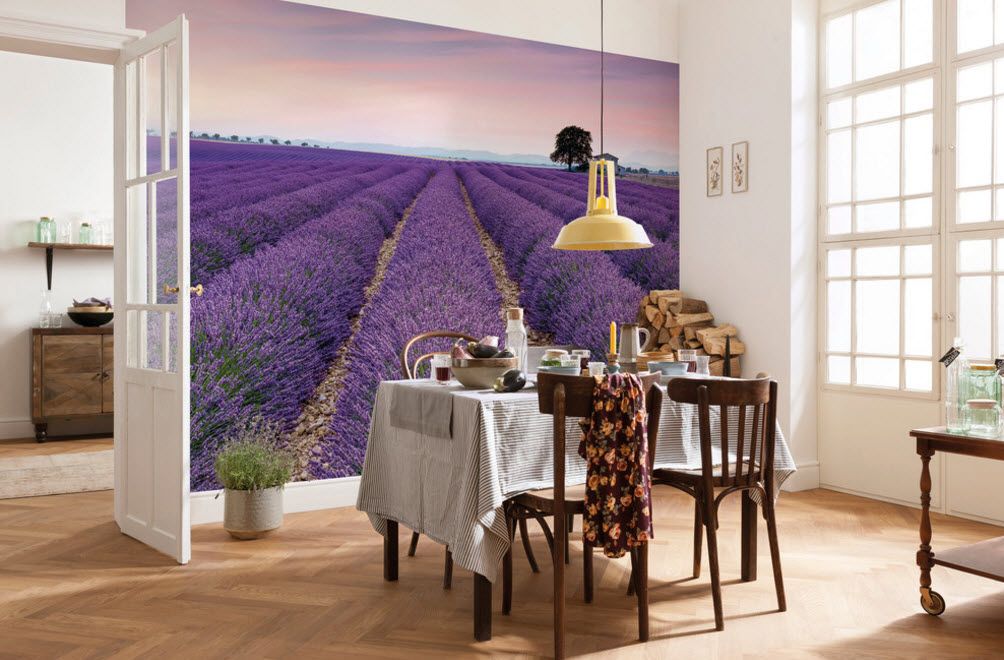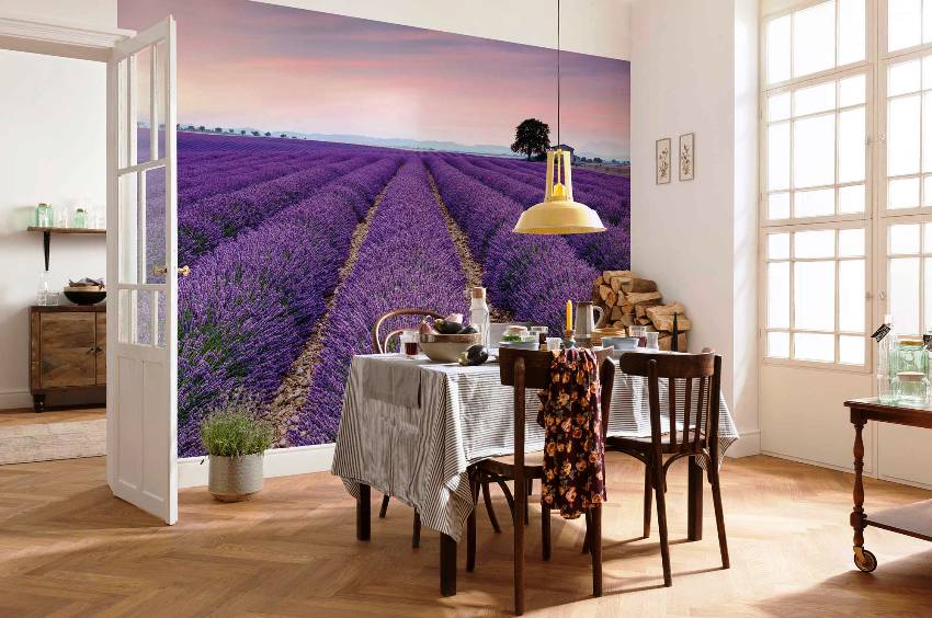 - Классические обои в стиле прованс. Обои могут быть украшены узорами, цветочными мотивами, клеткой и полосками. Также применяются пробковые и жидкие обои для кухни в стиле прованс.