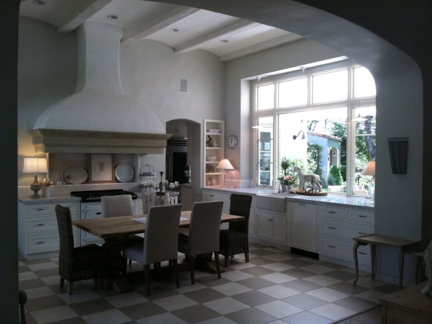 Изначально кухни прованского стиля тяготели к высоким потолкам и стенам, которые не отличались яркими красками и обилием декора. Со временем стиль немного адаптировали к современной эпохе, но, как и раньше, при оформлении пространства предпочтение отдают легкой обшарпанности, а стены не стремятся сделать идеально гладкими. Местами потрескавшаяся побелка только добавляет интерьеру шарма.