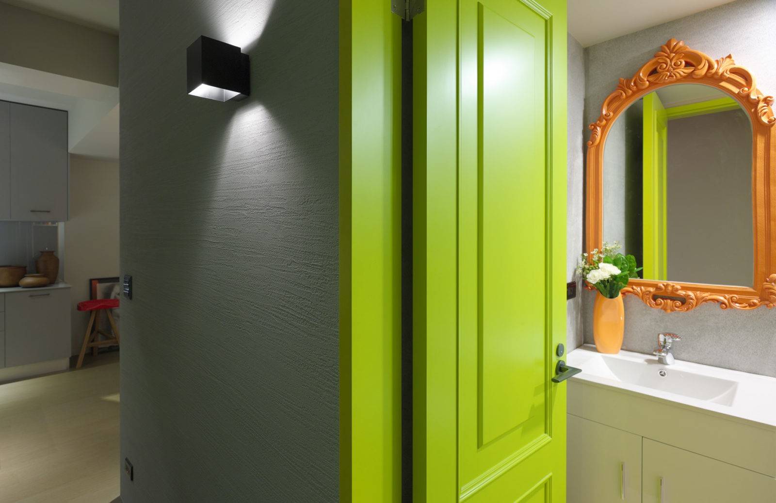 Сочетание цветных стен и необычных дверей – новая тенденция в дизайне интерьеров.