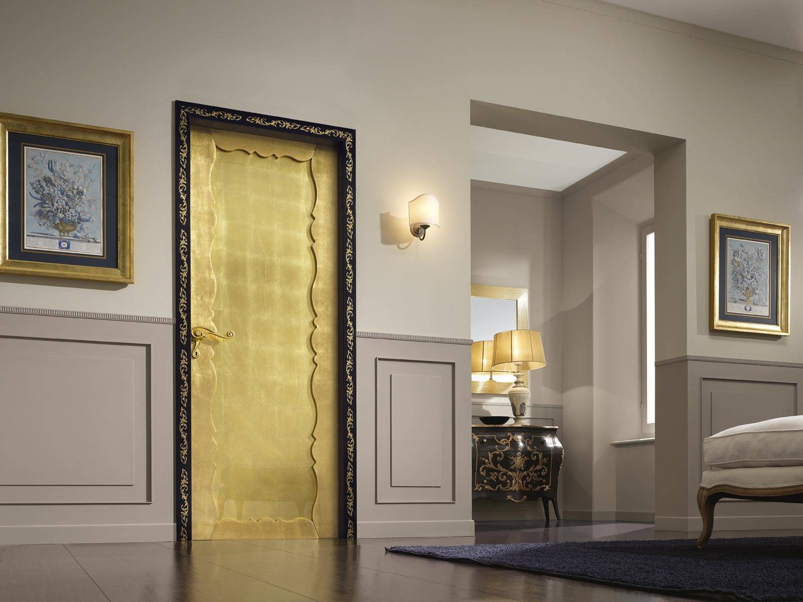 Ярко-золотые межкомнатные двери являются неотъемлемой частью современного и исторического дизайна (классика, барокко, кантри).