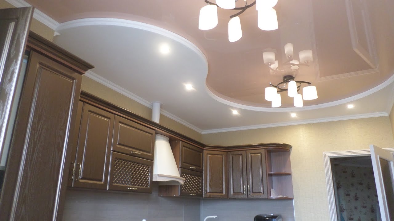 Дизайн двухуровневых потолков на кухне также бывает разным по форме: