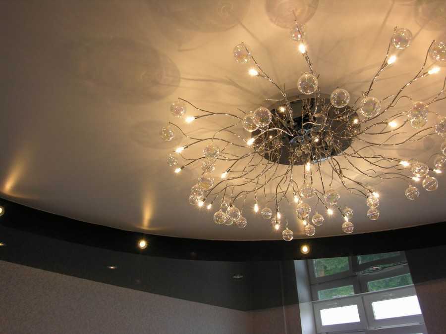 Это классический прибор для основного освещения в больших помещениях. В обычную комнату подойдет любая модель, которая сочетается с общим стилем. Но для натяжных потолков нужно учитывать особенности материала: