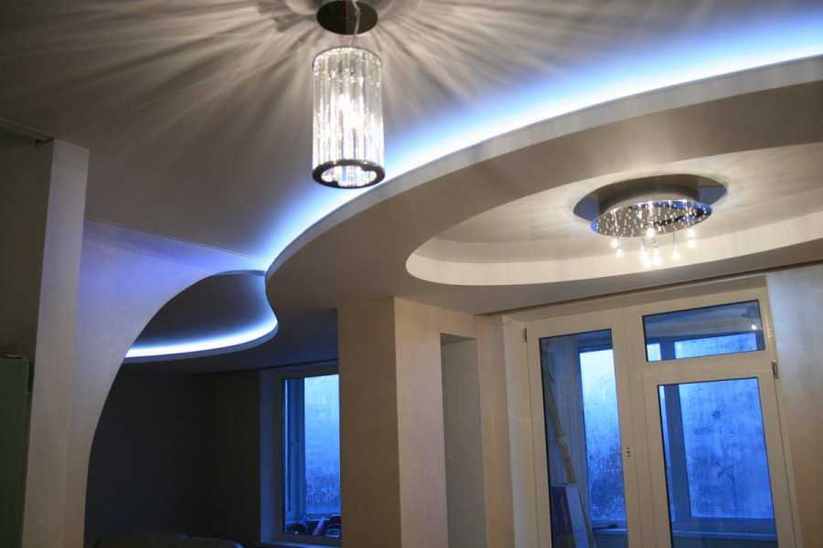 Рассчитывать на то, что подсветка будет являться основным источником освещения не стоит. Даже самые мощные диодные лампы не способны заменить основной свет. Поэтому для подсветки потолка в зале необходимо использовать основные источники освещения, которые будут освещать помещение целиком.