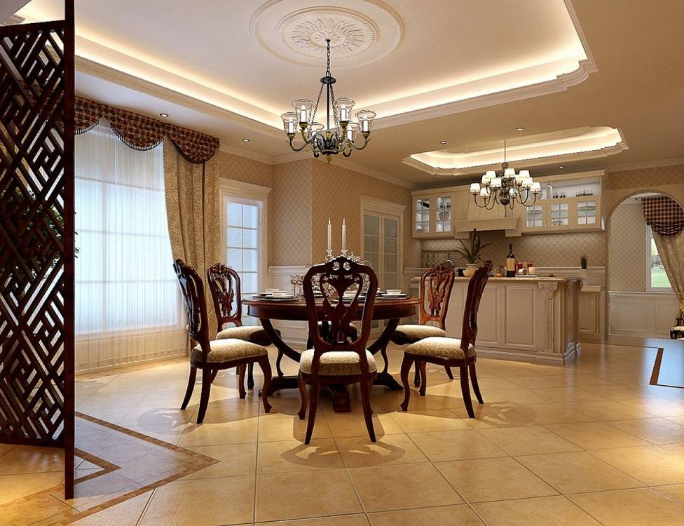 Выделение обеденной зоны при помощи потолка из гипсокартона