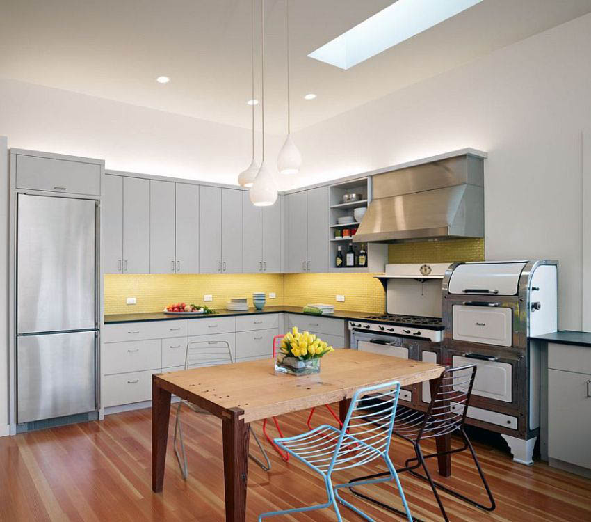 И в этом случае вы можете комбинировать разные виды освещения, например: большая люстра посреди кухни может ожидать торжества, а точечная подсветка возьмет на себя создание ежедневной романтики или активности!
