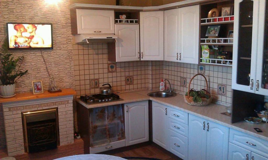 - Второй минус заключается в том, что в комнате с относительно небольшими габаритами иногда сложно установить кухонный гарнитур в одну линию.