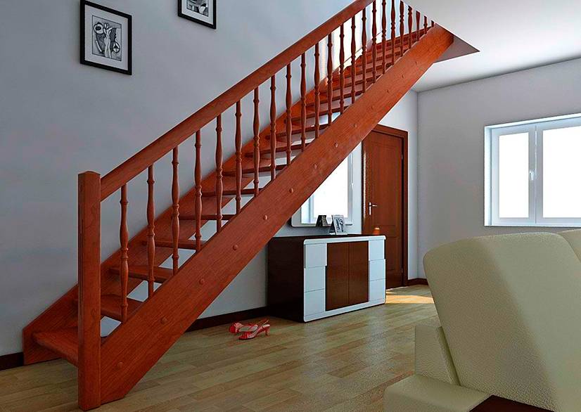 Тетивами, когда ступеньки располагаются сбоку от них.